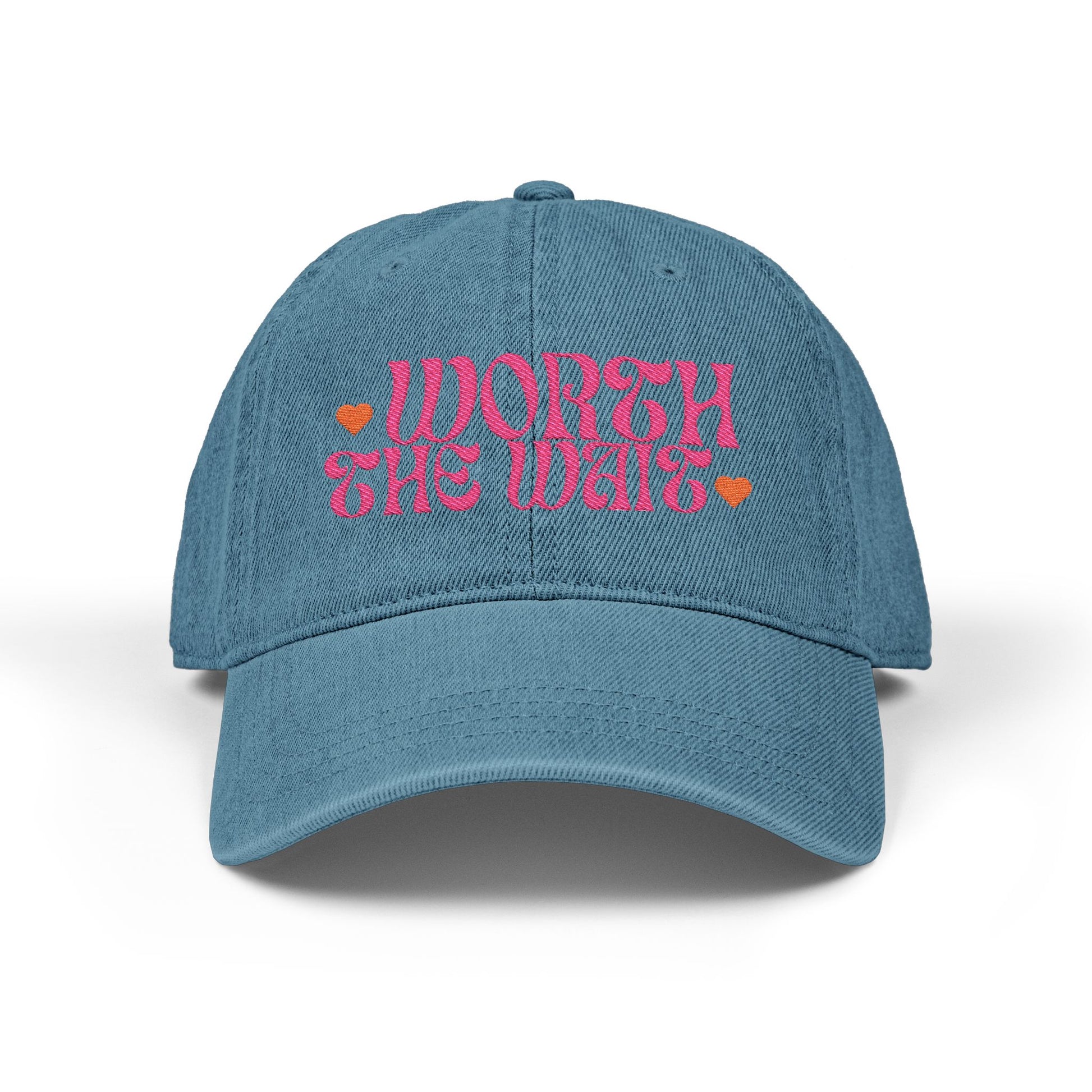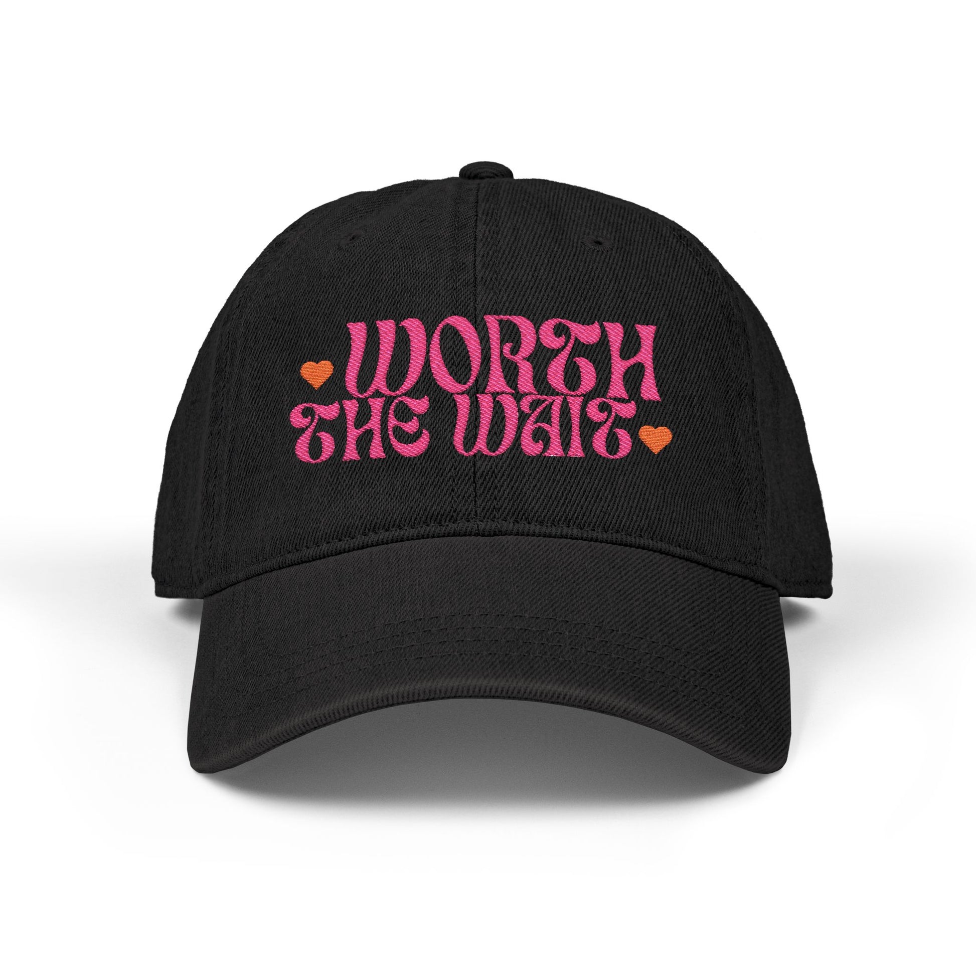 Remind yourself (and everyone else) that good things come to those who know their worth. This super cute embroidered dad hat features "Worth The Wait" in playful retro pink script, flanked by tiny hearts for that extra flirty vibe.